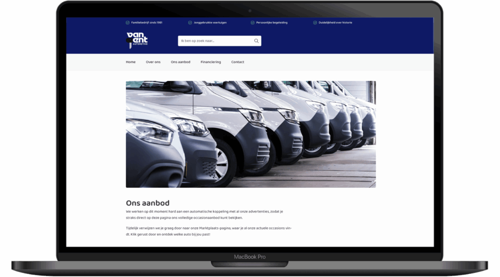 Door deze combinatie van een sterke visuele presentatie, gebruiksvriendelijkheid en SEO-vriendelijke opbouw fungeert de website als verlengstuk van de showroom. Het resultaat is een online omgeving die vertrouwen uitstraalt, het bereik vergroot via portalen en zoekmachines, en bezoekers effectief begeleidt richting contact, proefrit of aankoop.